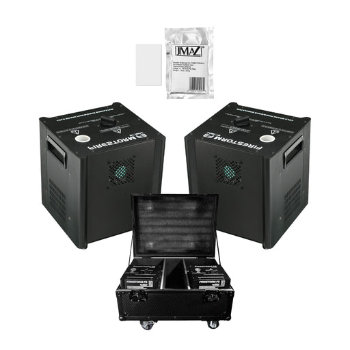 Bundle contains: 2 x JMAZ Firestorm F3 Cold Spark Machine1 x JMAZ Lighting JZ7002 4 Unit Road Case1 x JMAZ Firestorm F3 Outdoor Cold Spark Granule ...