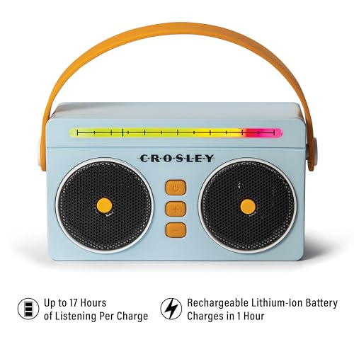 Crosley CR3050A-SB Mini Boombox Retro Portable Bluetooth Speaker with LED Lights, Sky Blue