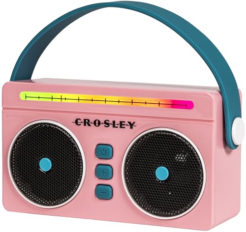 Crosley CR3050A-FG Mini Boombox Retro Portable Bluetooth Speaker with LED Lights, Flamingo