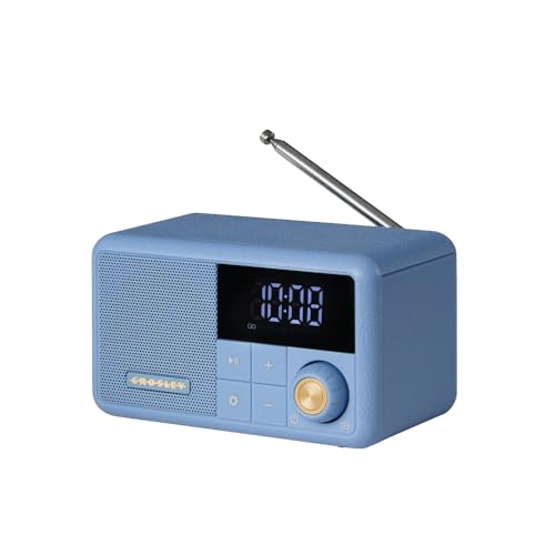 Crosley CR1121A-EB Cooper Retro AM/FM Radio, Portable Bluetooth Speaker with Aux Input and LED Display, Elemental Blue