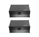 The stackable, detachable lid doubles as an elevated base for those lower tables or taller DJs. The case has steel hardware, butterfly latches, and a recessed, spring-loaded handle. It also has steel corners, aluminum edging, and rubber feet.