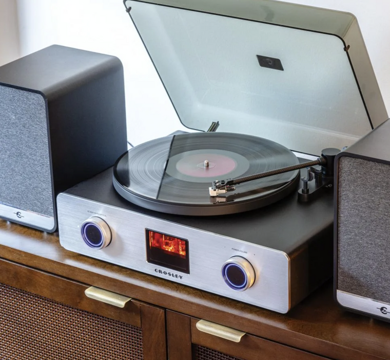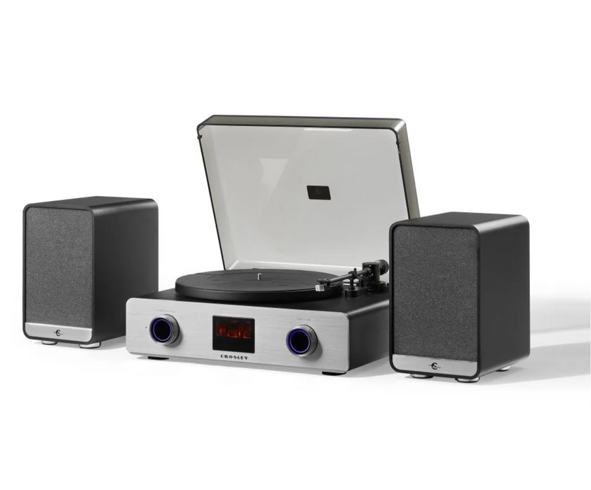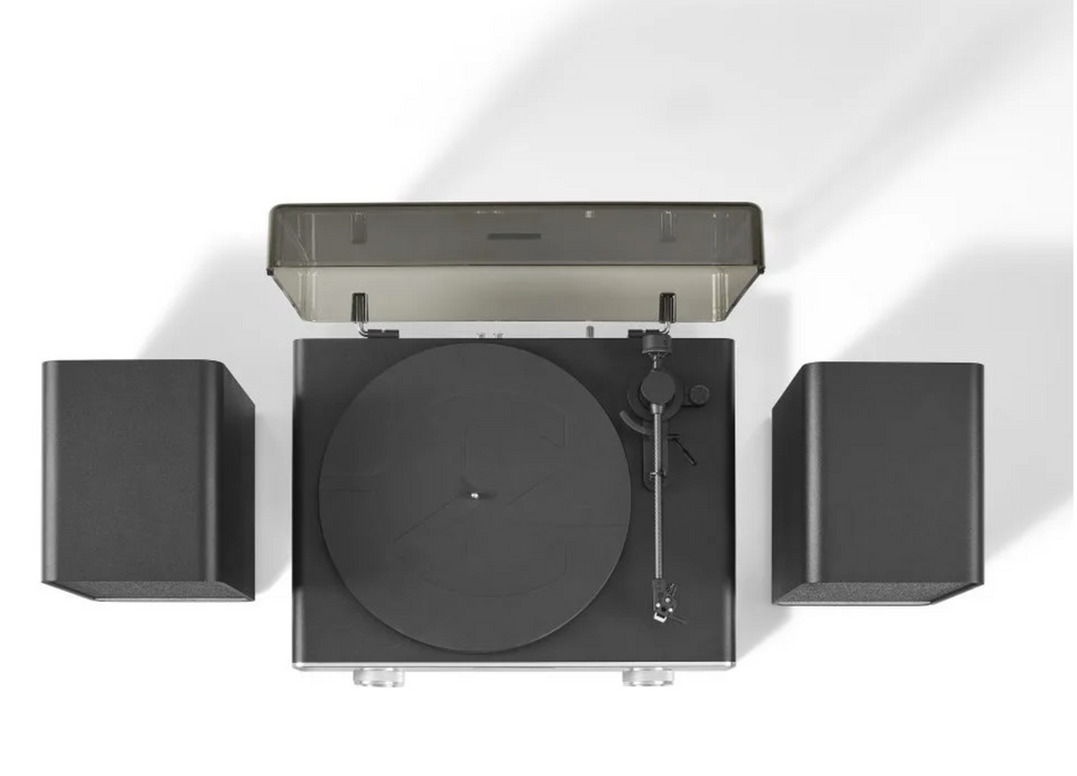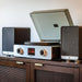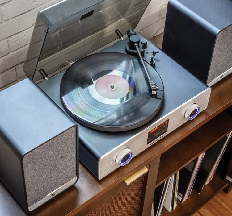The C92 Record Player with Speakers redefines vinyl playback. Its vacuum tube-powered preamplifier infuses your vinyl with warm, analog depth, while the digital amplifier adds modern precision and clarity. Together, they create a sound that’s uniquely rich and dynamic, brought to life through 120-watt stereo speakers. Crafted with high-end components like a carbon fiber tonearm, vibration control feet, and a brushed aluminum faceplate, the C92 combines exceptional audio performance with sleek, modern design.
