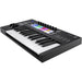 The Novation Launchkey 25 MK3 is an intuitive and fully integrated 25-key USB MIDI keyboard controller optimized for portability and tight integration with Ableton Live, which now features a dedicated button for activating the Capture MIDI function, plus track arm, quantize, click, and loop controls. The 16 improved velocity-sensitive, multicolored, backlit trigger pads provide greater control over dynamics and can be used to launch loops, samples, and more, while the eight knobs enable access to mixer functions and instrument/effect parameters. The USB-powered controller is compatible with a variety of DAWs and apps on Mac/Windows computers and iOS devices (adapter cables available separately).